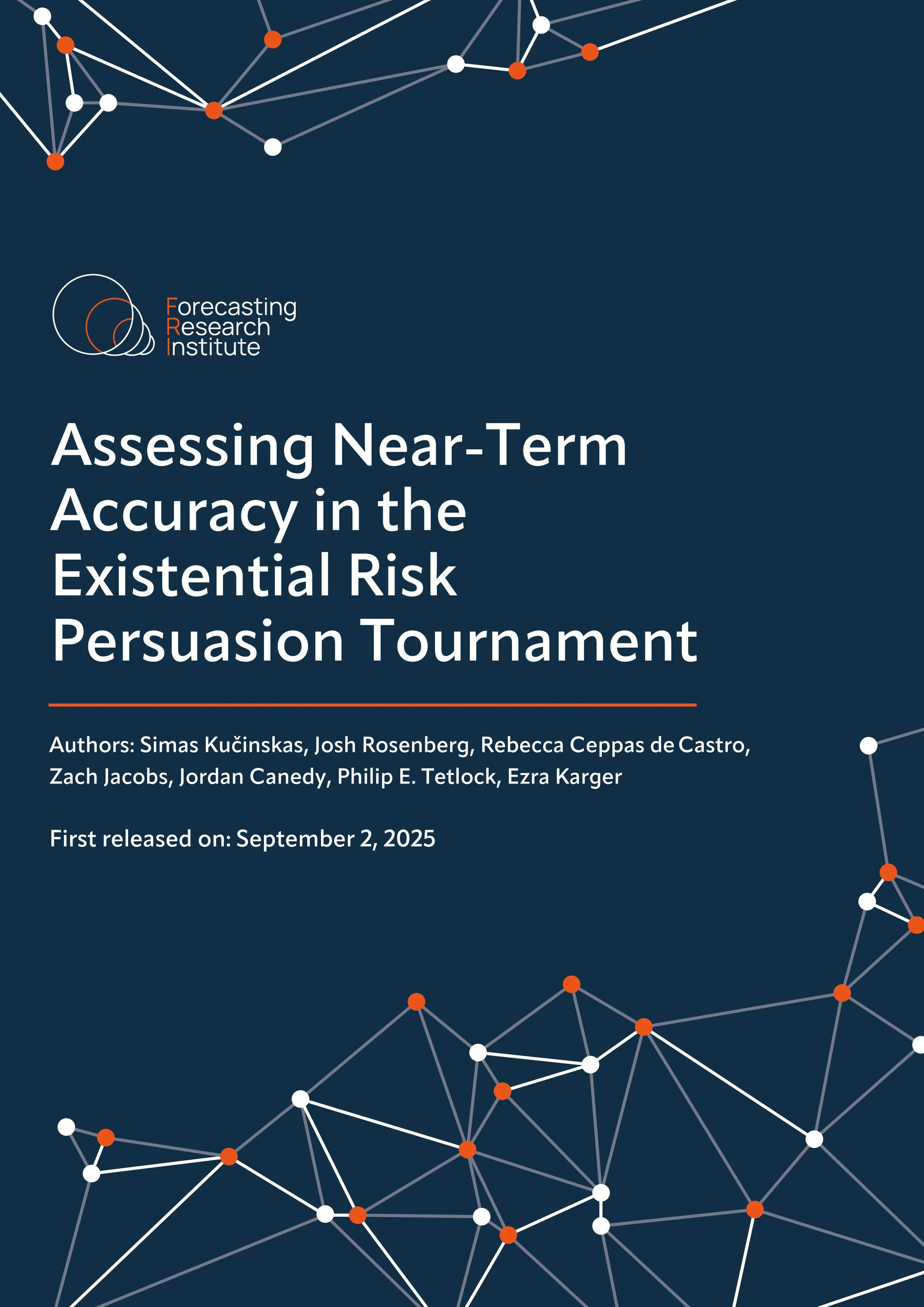 In June–October 2022, we convened 169 people to participate in the “Existential Risk Persuasion Tournament” (XPT). The XPT participants included both superforecasters with proven forecasting track records and domain experts with subject-matter expertise. The tournament incentivized accurate forecasting and persuasive argumentation about long-term risks humanity may face, including risks from artificial intelligence (AI), climate change, nuclear war, and pandemics. This report analyzes respondents’ forecasting accuracy on 38 near-term questions that resolved by mid-2025.